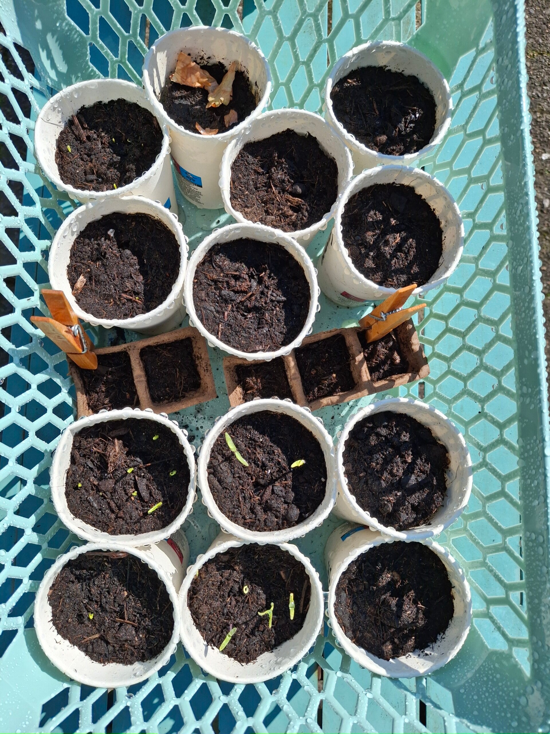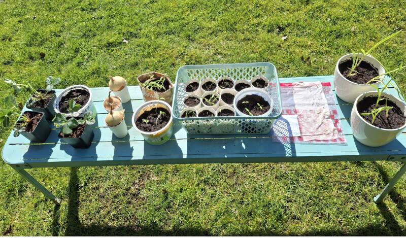 6 April: Deze dag gevuld met het vullen van potjes met tuinaarde en zaden. Van de kinderen een leuk broeikasje gekregen en hier de bakjes o.a. gevuld met pepers, paprikaπΆοΈ (in het Spaans bijna hetzelfde woord), zonnebloem en mais.π½