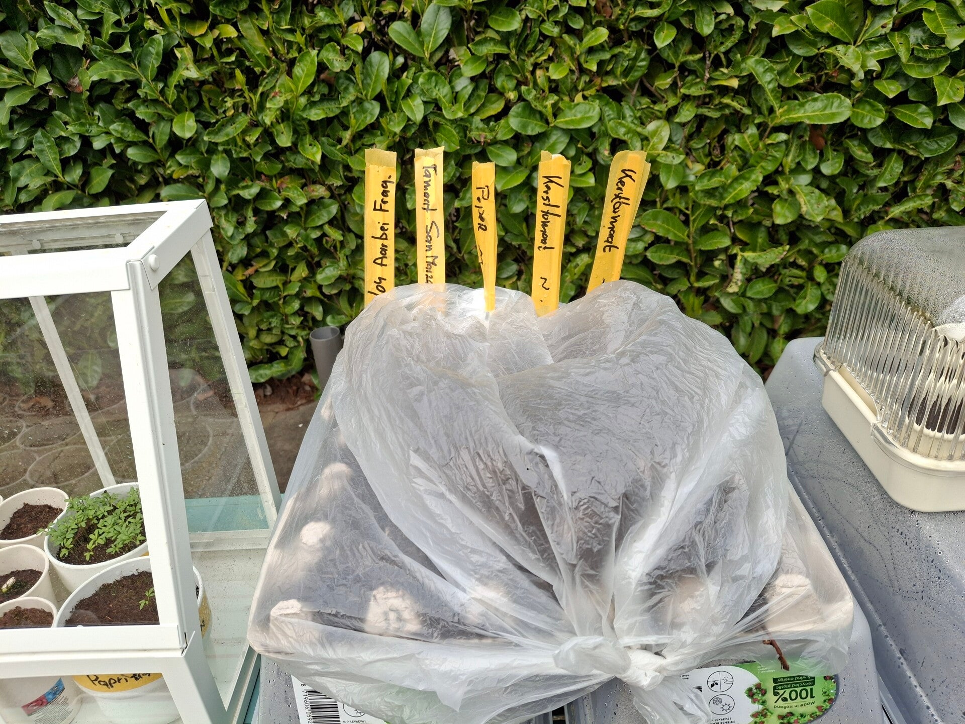 Nou, ben benieuwd. Ik wou nog een tweede AardappelToren maken maar er gaat me teveel tuinaarde in.......